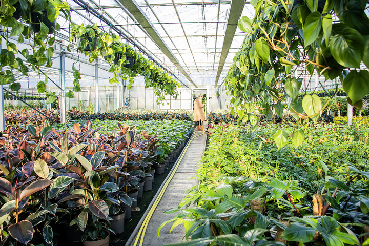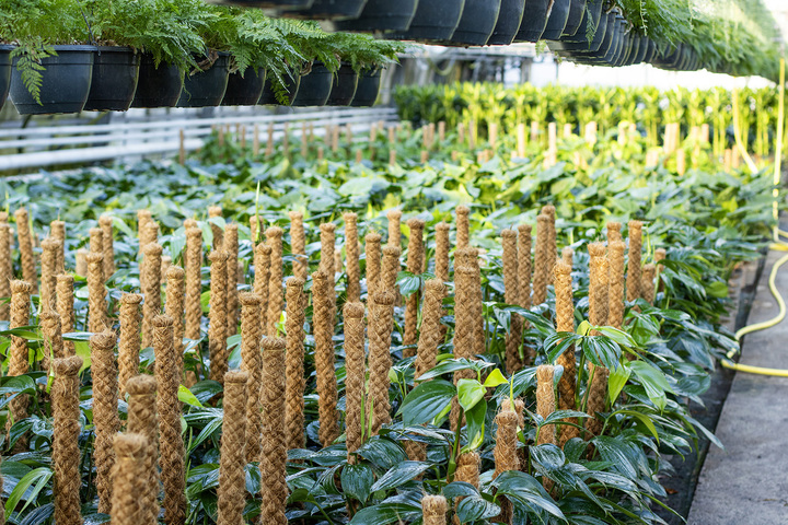 Die Stecklinge der Pflanzen kommen aus unterschiedlichen Ländern in der Gärtnerei an und werden schließlich per Hand und auch mit einer Maschine getopft. Die einzelnen Pflanzensorten gibt es je nach Alter in verschiedenen Topfgrößen. Die Gärtnerei produziert alles vom 13 cm bis zum 32 cm Topf. Am längsten verweilen Strelitzien in der Gärtnerei, sie benötigen 2 Jahre, bis sie ihre Endgröße erreicht haben.