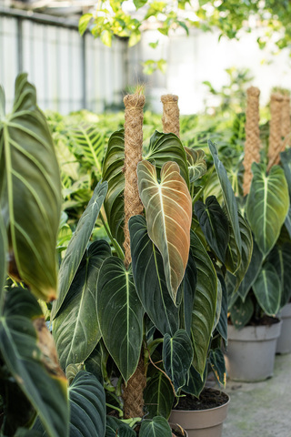 Während wir durch die Pflanzenreihen gehen bewundern wir die vielen verschiedenen Sorten. Hier und da zeigt uns Stefan Senden stolz seine Pflanzenraritäten. Besonders gut gefällt uns ein Philodendron am Moosstab. Der Gärtner erklärt uns, dass Pflanzen am Moosstab hochzubinden aufwendig sei, weil dies alles in Handarbeit geschehe. Dafür ist das Ergebnis aber umso schöner. Ebenfalls werden alle Pflanzen in der Gärtnerei per Hand gepflegt, ausgeputzt und umgetopft. "Nur so können wir die beste Qualität liefern. Wir experimentieren auch gerne mit neuen Sorten und freuen uns immer wieder über die Ergebnisse."