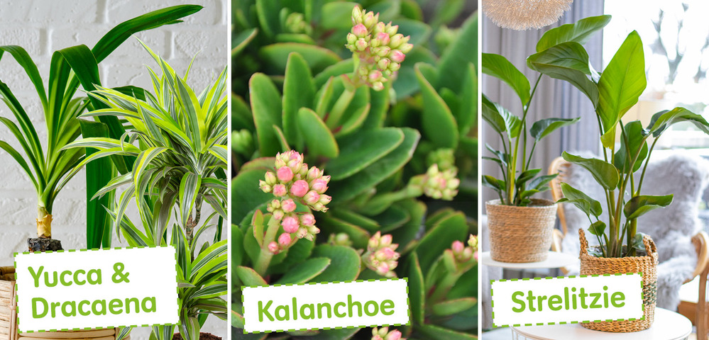 Auch einige Zimmerpflanzen lieben sonnige Standorte wie die exotischen Kakteen und die grüne Strelitzie. Absolut pflegeleicht ist auch die großblättrige Anthurie, die zartblühende Kalanchoe, die unverwüstliche Zamioculcas sowie die Yucca und Draccaena.