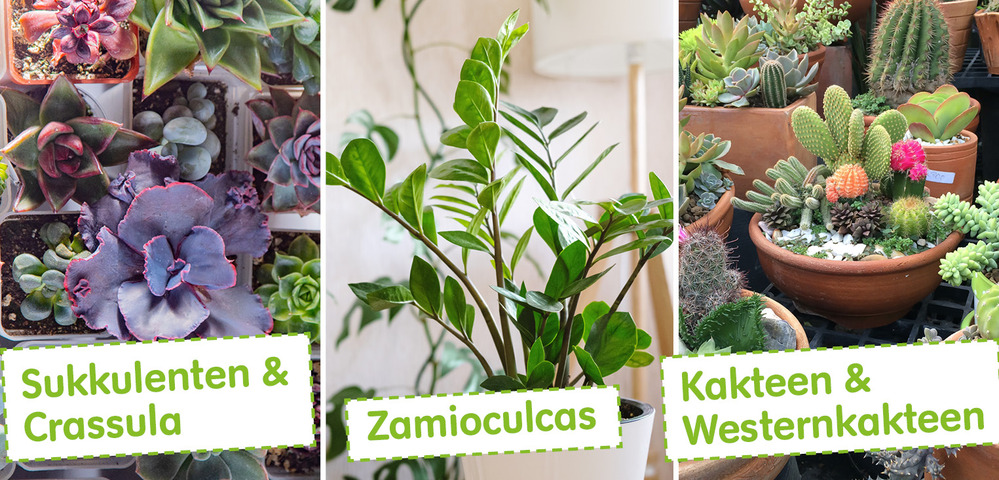 Wie wäre es mit der großen Pflanzenwelt der Sukkulenten? Sie bezaubern mit ihren exotischen Formen und leuchtenden Farben. Ihre dickfleischigen Blätter speichern Flüssigkeit, weshalb sie nur wenig Bewässerung benötigen und ideal für Vielbeschäftigte oder Anfänger sind. Die einzigartigen Kakteen, Echeverien und Aloen werden garantiert zum Blickfang an jedem Platz.