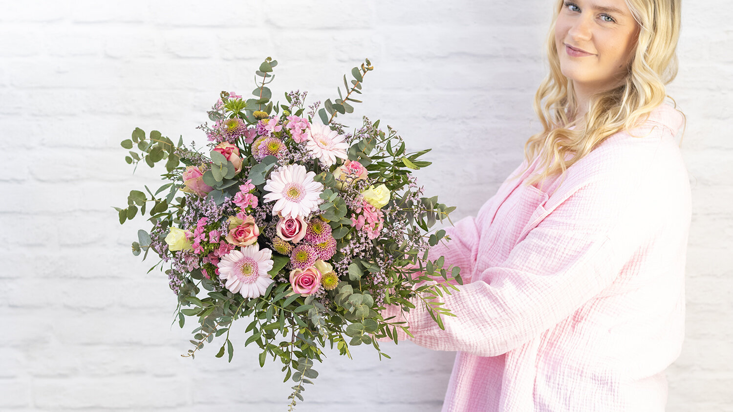 Rosa Sträuße bringen Leichtigkeit und Frühlingsgefühl in unsere aktuelle Auswahl. Sie stehen für Liebe und Romantik. Sie wirken frisch, modern und ausgewogen und eignen sich sowohl als Geschenk als auch für das eigene Zuhause. Die Gestaltung setzt auf harmonische Rosatöne, kombiniert mit frischem Grün. Dadurch entstehen Sträuße, die eine ruhige und fröhliche Atmosphäre schaffen. Mit den ersten helleren Tagen bringt die Farbwahl frischen Wind in den Alltag. Ob als dezenter Blickfang auf dem Tisch oder als liebevolle Aufmerksamkeit – rosa Sträuße bringen Frische in den Alltag und greifen den Wechsel der Jahreszeit auf.