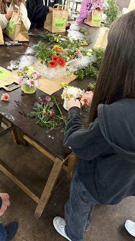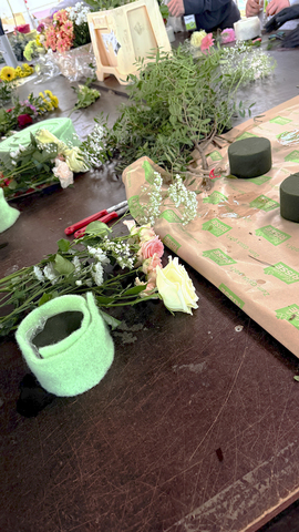 Doch nicht nur Zuschauen war angesagt – selbst kreativ werden stand ebenfalls auf dem Programm. Mit viel Freude gestalteten die Teilnehmer*innen ihre eigenen kleinen Gestecke und fertigten individuelle Blumenarmbänder an. Dabei konnten sie ihrer Kreativität freien Lauf lassen und erste Erfahrungen im floristischen Arbeiten sammeln.