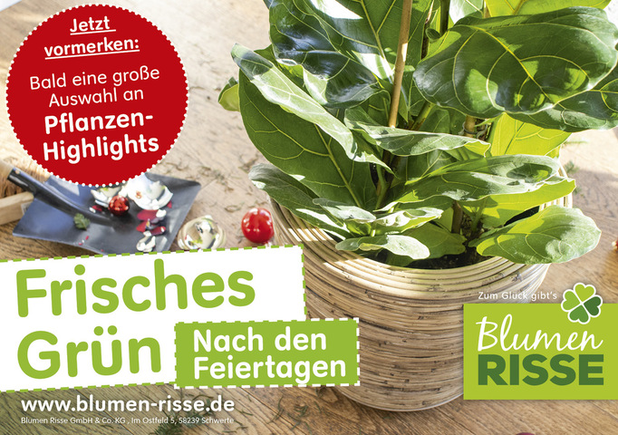 Finde ab dem 08. Januar bei Blumen Risse Wohlfühlgrün und Pflanzenlieblinge für Dein Zuhause.
