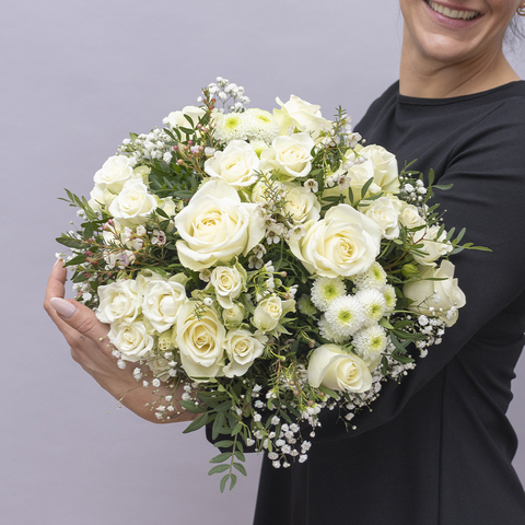 Entdecke die Vielfalt weißer Sträuße in unseren Blumenläden, Blumenmärkten und Gartencentern oder online und überzeuge Dich selbst von der klaren, zeitlosen Wirkung von Weiß.