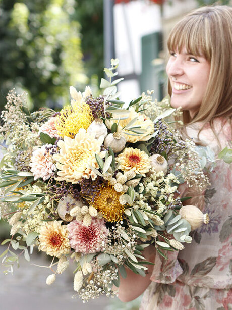 Mache Deinen Herzensmenschen eine Freude – oder gönne Dir selbst einen farbenfrohen Blumengruß! Ob klassisch gebundener Strauß oder eigene kreative Kombination aus frischer Bundware: Stelle Dir Dein Lieblingsarrangement zusammen und überlasse das Binden unseren erfahrenen Florist:innen.