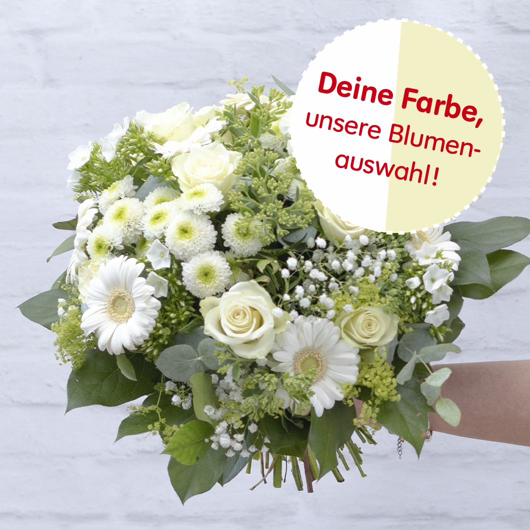 Mit unseren 'Hauptsache'-Sträußen werden nicht nur Deine Liebsten, sondern auch Du überrascht. Durch Deine Auswahl gibst Du die Farbe vor, den Rest übernehmen wir: