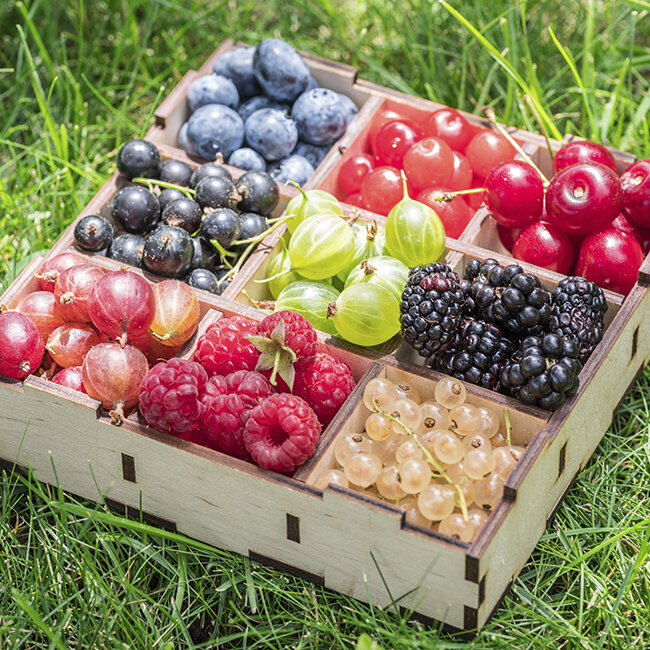 - Johannisbeere, Stachelbeere, Heidelbeere passen eher zum klassischen Beerenbild.
