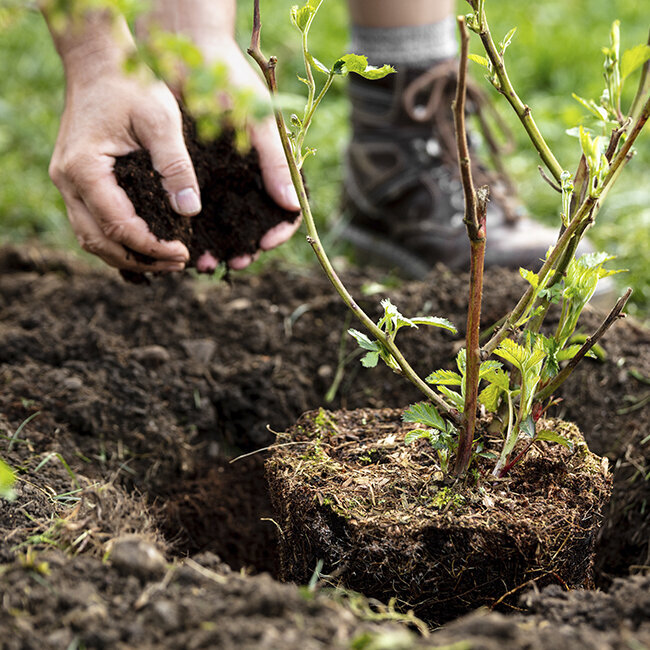 - Pflanzloch: ungefähr doppelt so breit wie der Wurzelballen