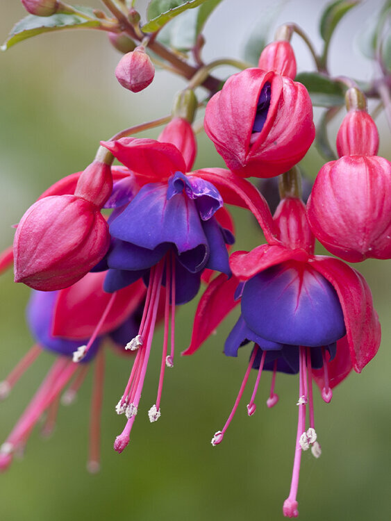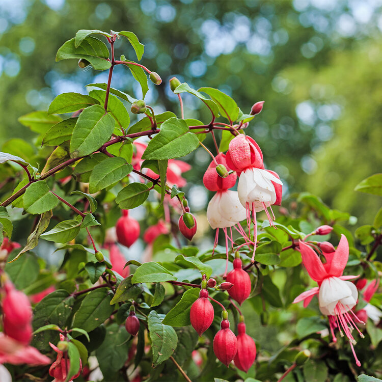 Fuchsien begeistern mit einer besonders langen und üppigen Blütezeit. Je nach Sorte und Standort zeigen sich die ersten Blüten bereits ab Mai und halten oft bis in den Oktober hinein an.