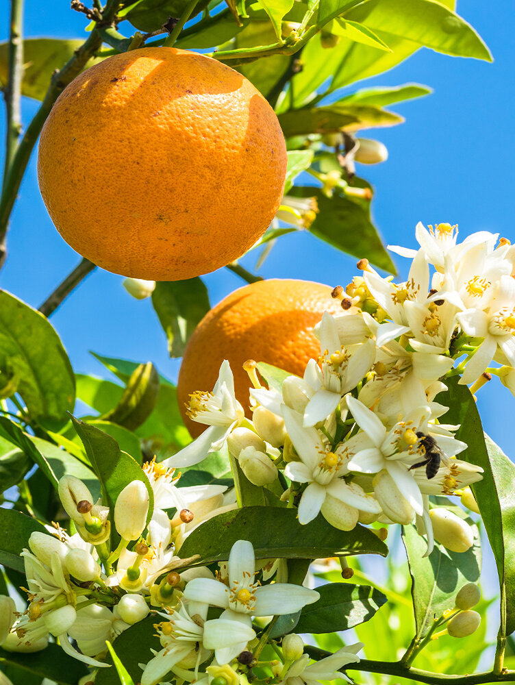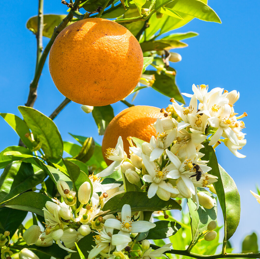 Die weißen Blüten vieler Zitruspflanzen verströmen einen intensiven, angenehmen Duft. Sie erscheinen meist im Frühjahr oder Frühsommer. Aus ihnen entwickeln sich – bei guten Bedingungen – die typischen Früchte.