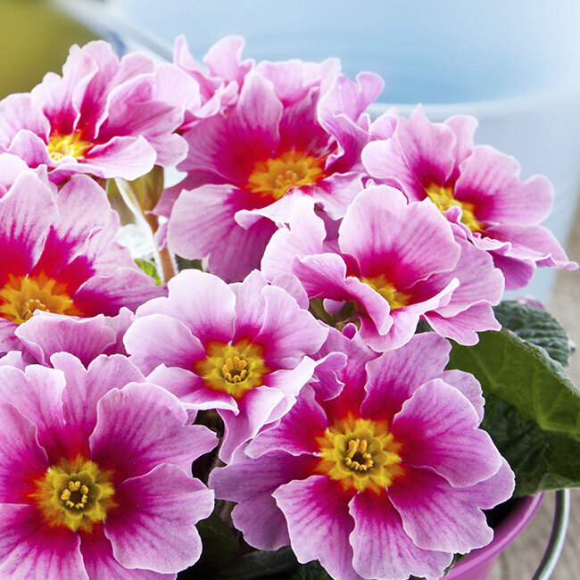 - Primeln sind in vielen Farben erhältlich. Sie eignen sich besonders gut für Beete, Schalen und Balkonkästen.